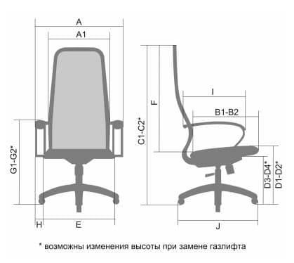 Высота от пола с уч. сиденья min (мм) (D1) 440